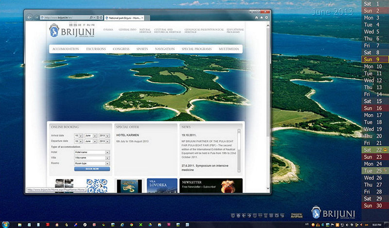 Locations on the screen where your logo or ads can appear, with one of the possible locations of the monthly calendar layer. Photographer: Damir Nehyba; Model: Ljupka Gojic; Client: Self Promo.